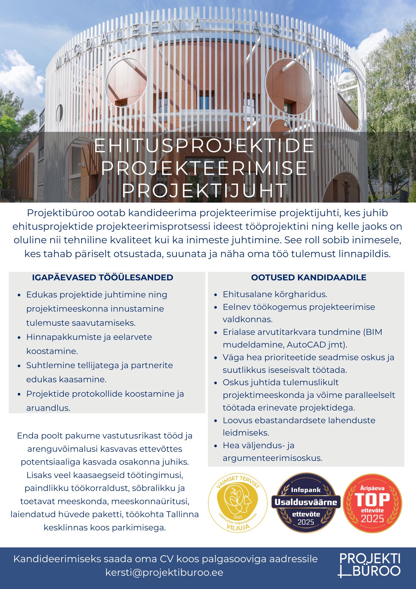 Olen nõus, et minu andmeid talletatakse Projektibüroo andmebaasis konkursi raames või säilitatakse, et minuga saaks kontakteeruda sobivate tööpakkumiste korral.